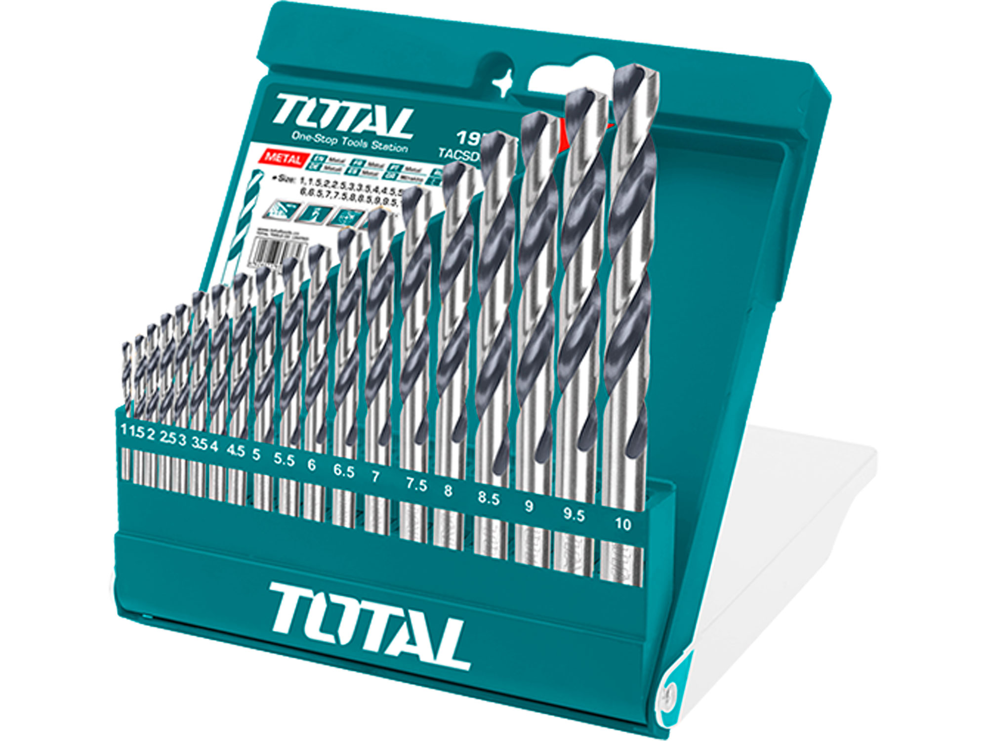 Drill bits for metal, set of 19 pieces, HSS