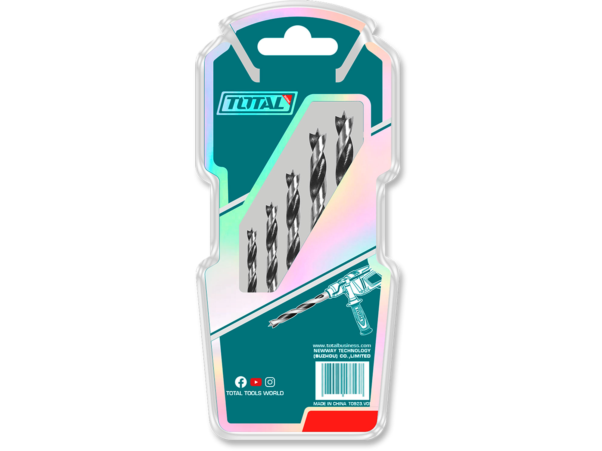 This set contains five wood drill bits with different diameters and lengths. The sizes are as follows: