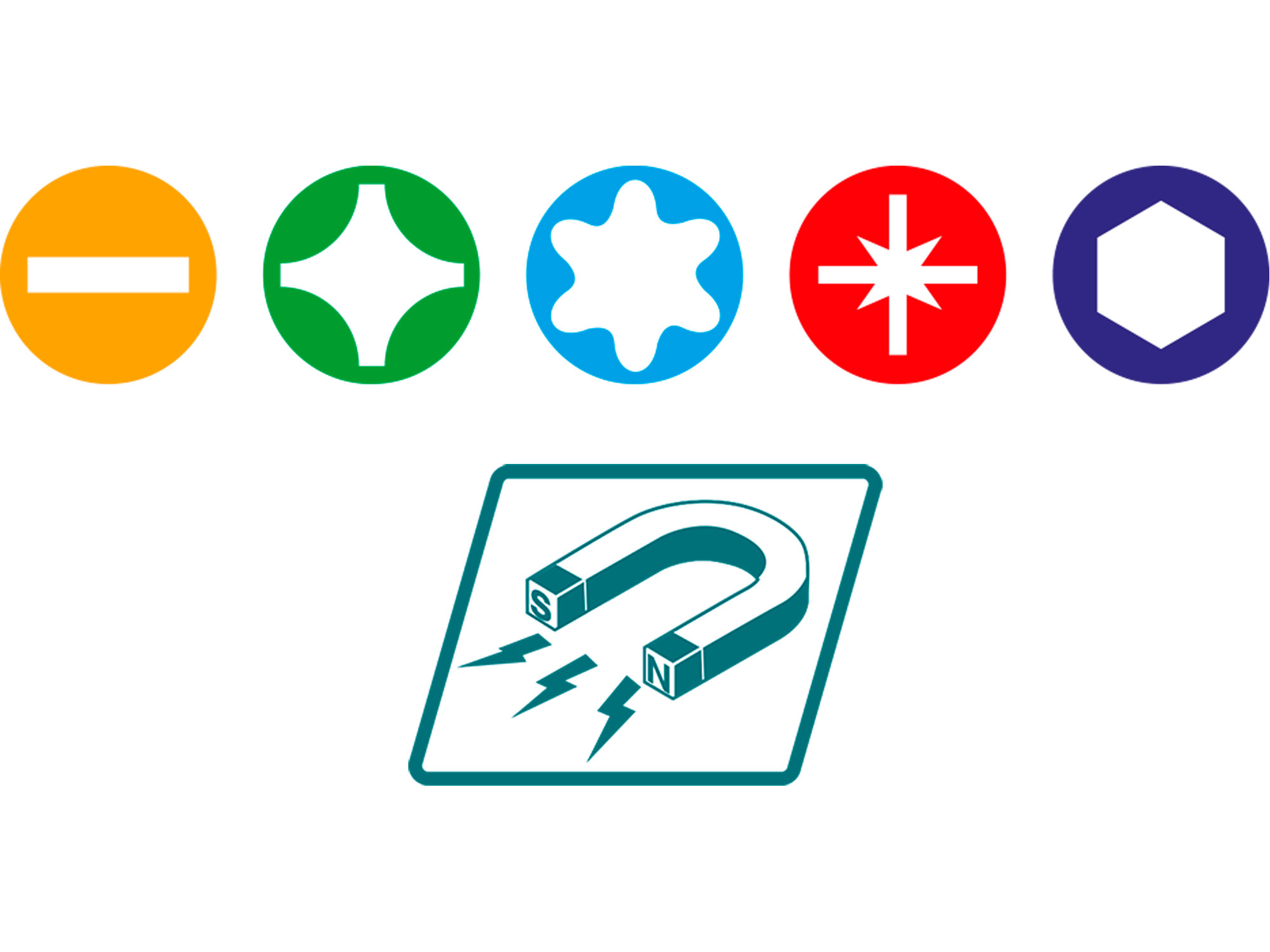 Die stark magnetische Verlängerung erleichtert das Arbeiten enorm, da die Schrauben beim Einschrauben nicht herunterfallen. Die 21 verschiedenen Spitzen decken die gängigsten Schraubentypen ab und die sieben 1/4" Verlängerungen bieten zusätzliche Flexibilität.