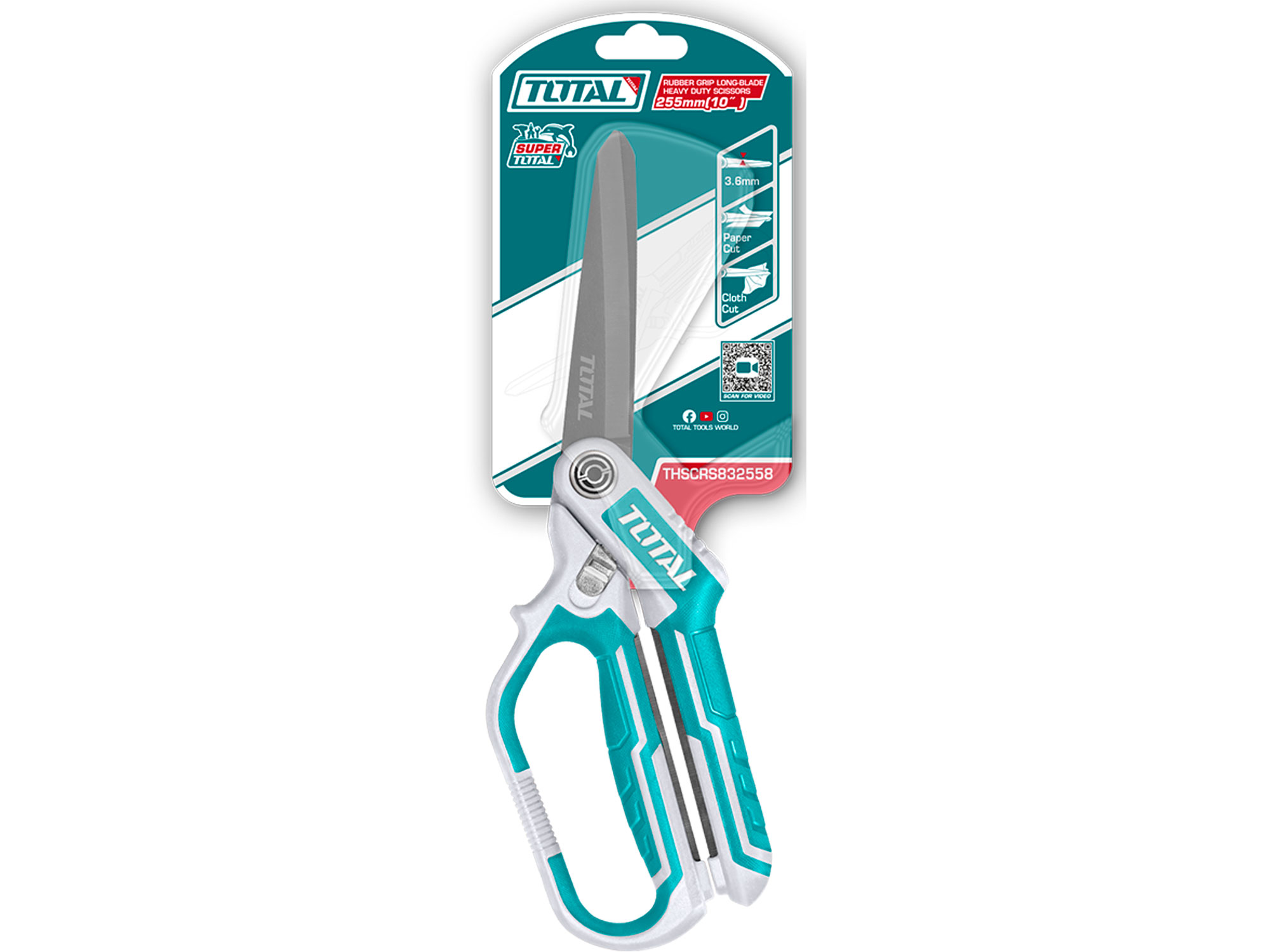 These scissors are ideal for use in industry, trade or production. They are robust and durable and can easily cut through even the hardest materials with their sharp, titanium-coated blade. The serrated lower blade ensures a non-slip cut and prevents the material from slipping away during cutting.