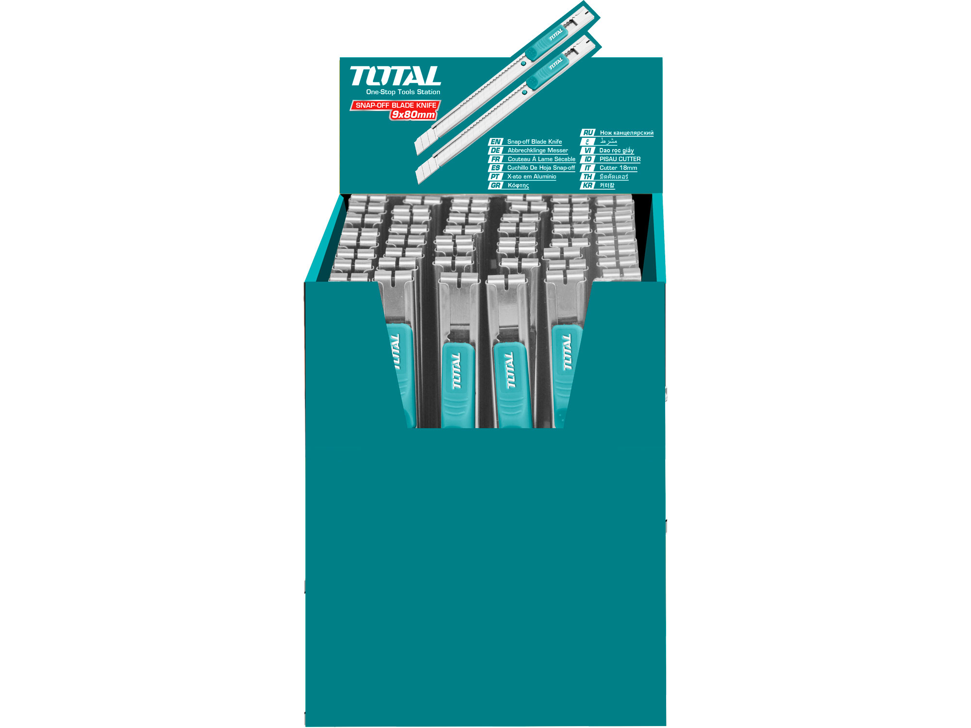 This snap-off knife with a total length of 130 mm has an automatic lock for the safety of the user. The length of the blade is 9x80mm. These dimensions allow the knife to make accurate and precise cuts. Please note that the knife is sharp and should be handled with care. Ideal for professional craftsmen, DIY enthusiasts and hobbyists.