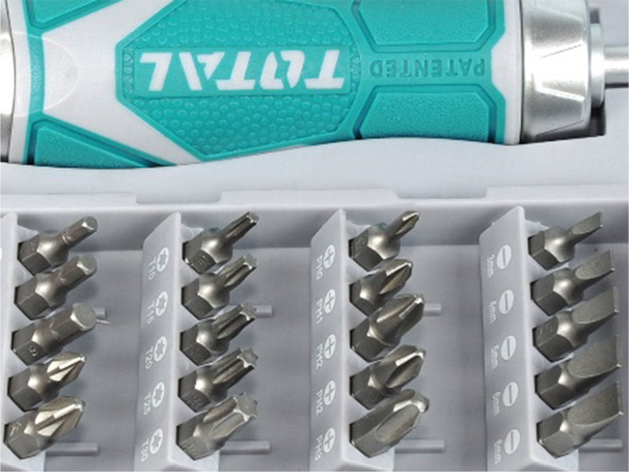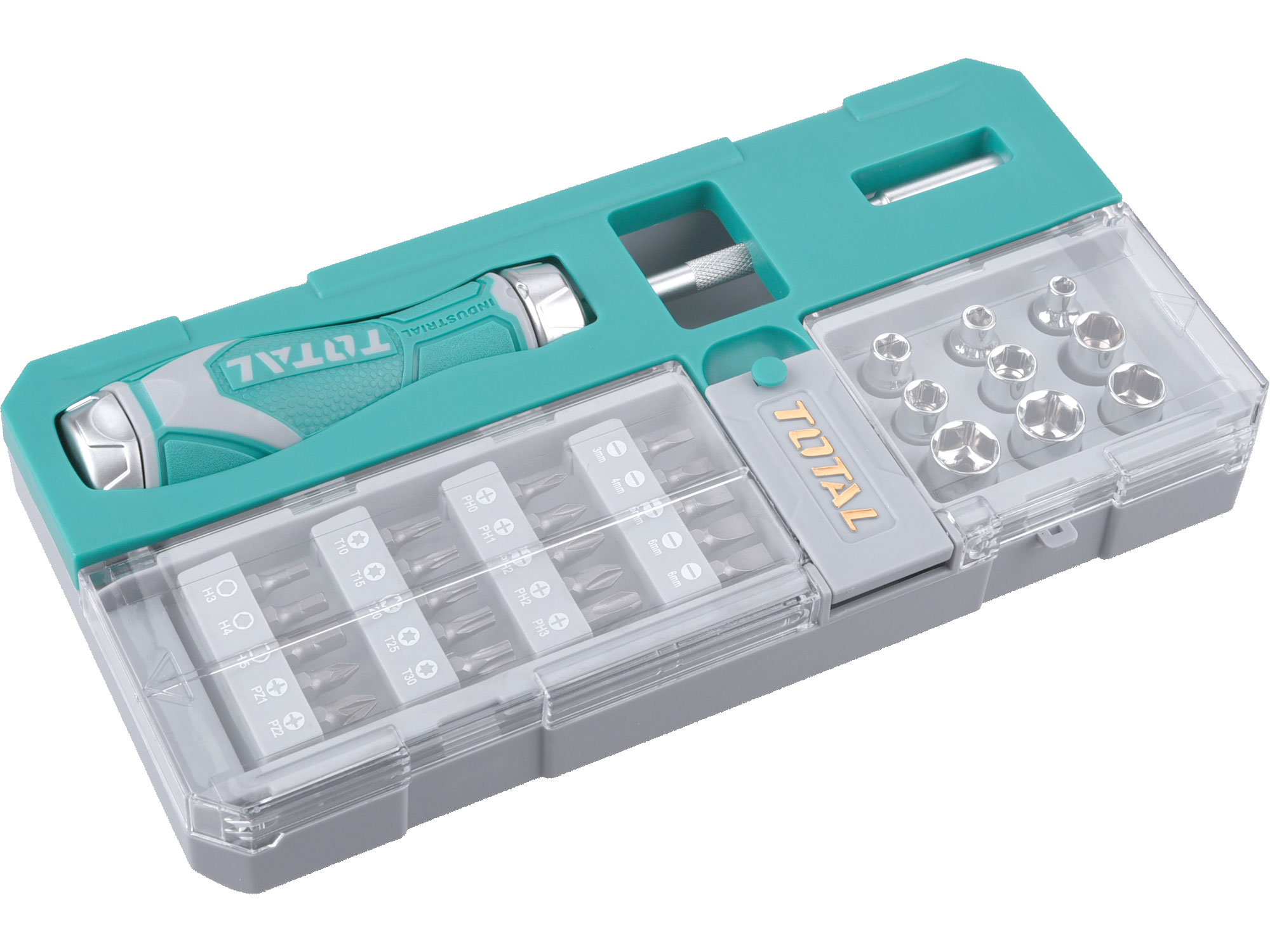 Total Ratchet screwdriver with nuts and points, set of 33 pieces, industrial