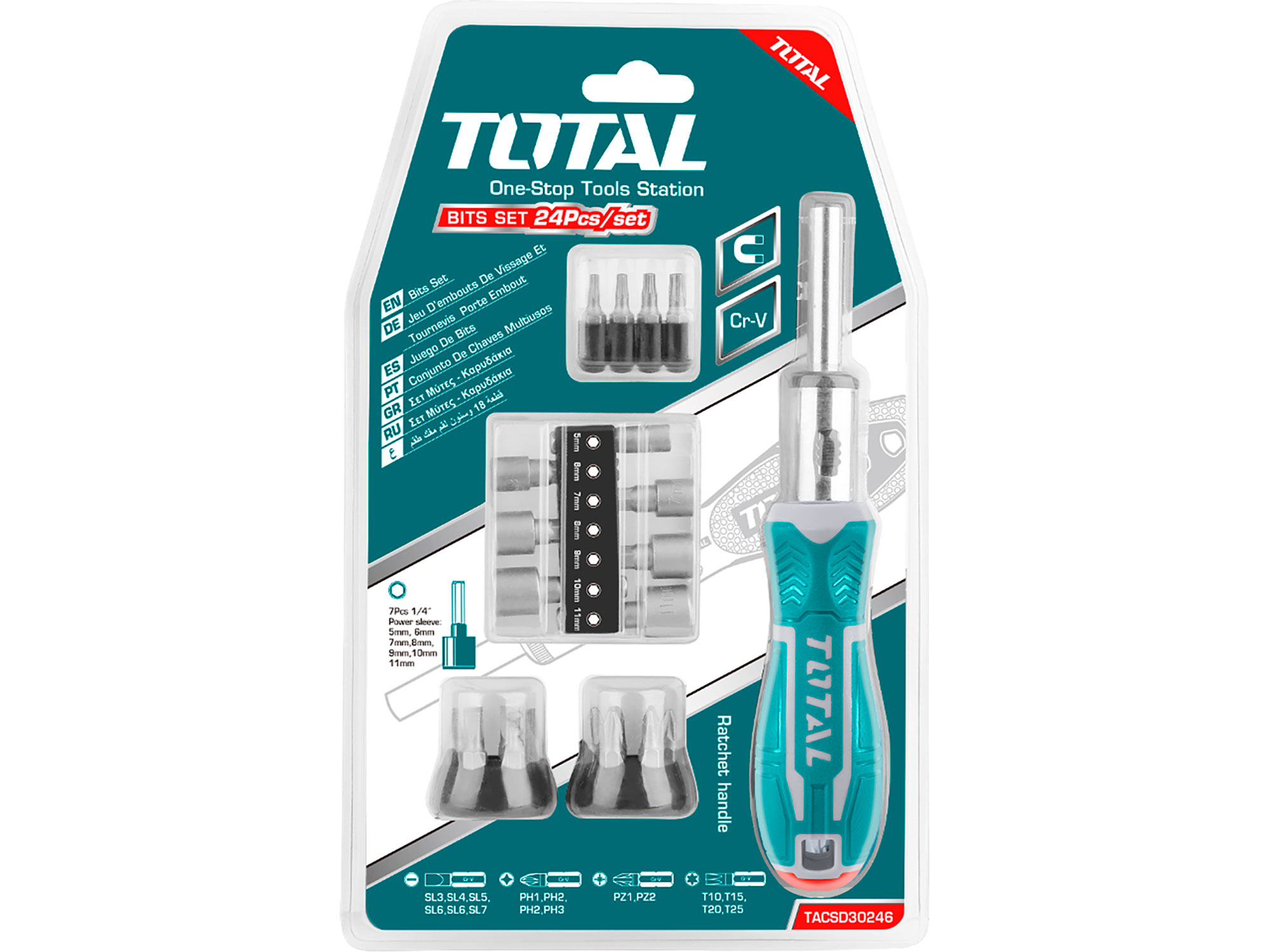 Total Ratchet screwdrivers with tips, set of 24 pieces