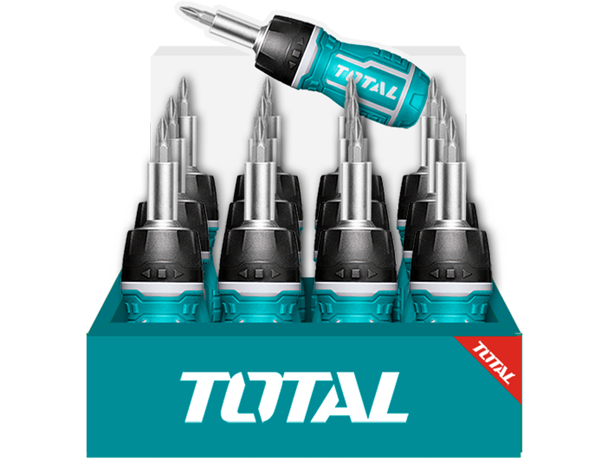 This 8-in-1 screwdriver from Total is a versatile tool for a variety of screwdriving tasks. With its ratchet function, screws can be loosened and tightened effortlessly. The ratchet has a high-quality finish and guarantees a long service life.